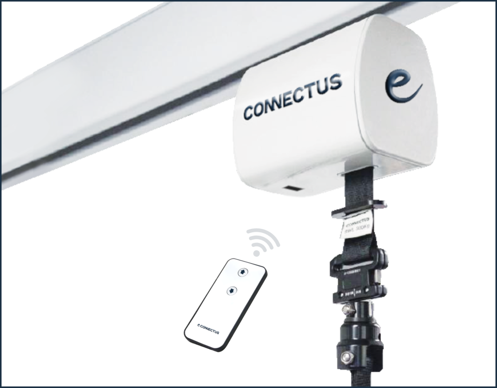 Designed to remove the high-risk overhead reach associated with traditional ceiling hoist connections, eConnectus enables precise, error-free operation using infrared remote-control technology. This allows caregivers to connect a portable ceiling hoist safely and effortlessly from below—reducing physical strain, preventing workplace injuries, and improving overall workflow.