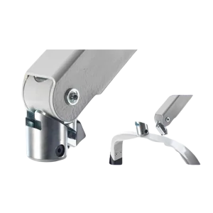 • Curved Boom & Spreader Bar: Maintains eye contact with patient during transfers.