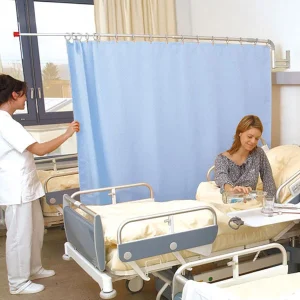 Ropimex RTI privacy curtain telescopic arms folding down and swivelling is ideal for intensive care units and locations that do not permit lateral swivelling of the telescopic arms. Following the telescopic arms, simply push together and fold down. It features a space-friendly and user-friendly design, specially designed for use in spaces with limited area.