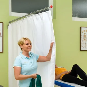 Ropimex RTS privacy screen features a telescopic arm that can swivel to ensure you don’t trip over anything hanging on the wall. The screening system is only there when it is needed – after every use, you can simply push them together and move them towards the wall. Your room is then restored to its usual appearance. Ropimex RTS privacy screen extends up to 2100mm. For longer rails or connections, contact us.